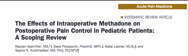 The Effects of Intraoperative Methadone on Postoperative Pain Control in Pediatric Patients: A Scoping Review